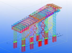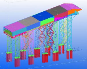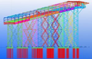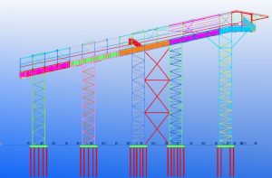 The construction is pre-assembled in 5 modules at ground level, which are then hoisted to a height of 65 meters after being fitted with a high crane on the pillar construction.