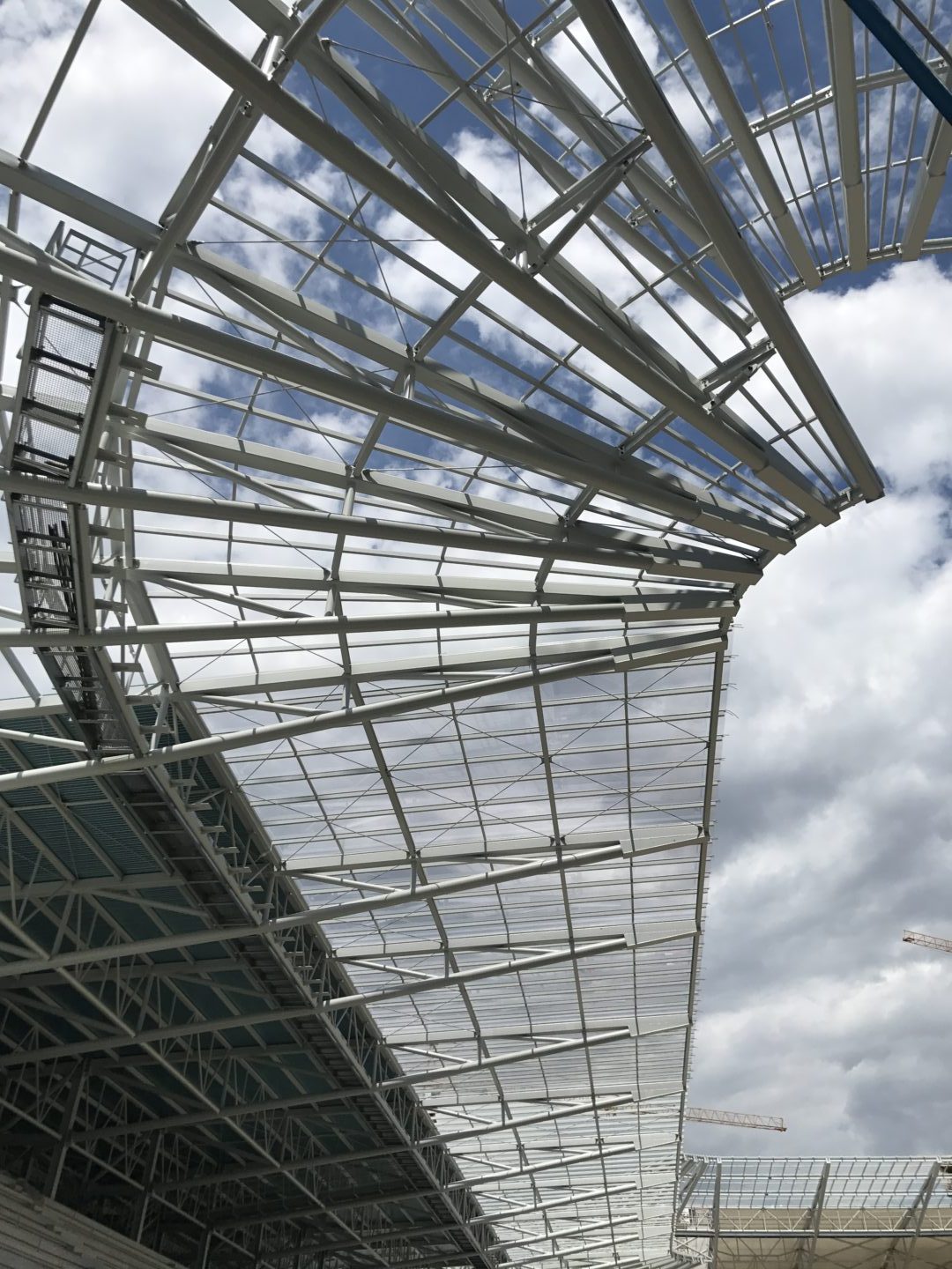 The cantilevers on The East Grandstand and The South Grandstand are joined to the steel column.