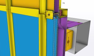 The project presents a part of the external façade of a building located in London. The façade dimensions ~5.7m by ~8m was designed in accordance with the Reynaers CW50 curtain wall system. As part of the project, a comprehensive workshop design of brackets, aluminium profiles, glass, sandwich panels, steel flashings and connectors was delivered.