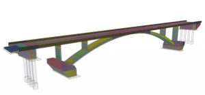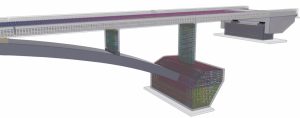 The total length of the bridge SO 209 is 67.55 m. The span of the arch is 42 m and the rise is 5.525 m (L/7.6). The span of the individual spans of the bridge deck is 5.80 m + 6.40 m + 7.20 m + 15.70 m (connection with the arch) + 8.40 m + 8.20 m + 9.30 m. The bridge is designed as fully integrated and the abutments are based on piles with a reduced shaft to allow for longitudinal expansion.
