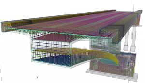 In this project, a combination of graphic programs was used to create a 3D model, including its reinforcement using the connection of Rhinoceros, Grasshopper and Tekla Structures programs. The reinforcement of the structure is parametric using the connection of Grasshopper and Tekla programs. At the same time, common 2D drawing documentation was created with the help of mentioned programs.
