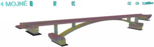 The total length of bridge SO 212 is 64.51 m. The span of the arch is 42.25 m and the rise is 4.3 m (L/9.8). The span of the individual spans of the bridge deck is 7.50 m + 7.00 m + 7.00 m + 18.41 m (connection to the arch) + 6.50 m + 6.50 m + 6.00 m. The endings of the bridge are designed as semi-integrated without bridge joints. The bridge deck is rigidly connected to the wings and is supported on a flat-based reinforced concrete abutment via elastomeric bearings.