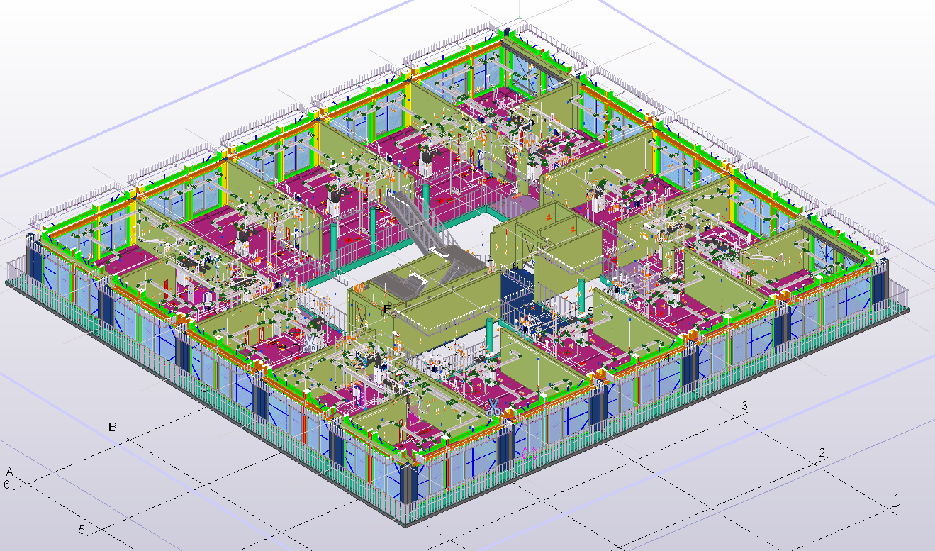 Voor de engineering van een aantal onderdelen hebben we samen gewerkt met meerdere leveranciers in opdracht van Byldis. Het gaat hierom de puien, volvloeren, stalen liggers, trappen en bordessen. Al deze partijen hebben de onderdelen in 3d uitgewerkt en de IFC modellen zijn hiermee uitgewisseld naar Byldis en de klant.