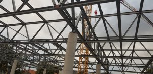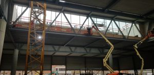 The congres is an open hall where the techniques and the roof are supported by primary, secondary and tertiary beams. The total surface is +/- 3900m².