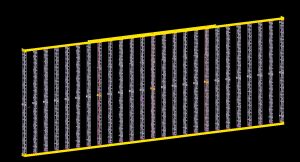 Naar de buitenzijde van de hal zitten nog kleinere vakwerken van 15m overspanning.