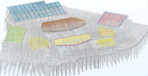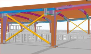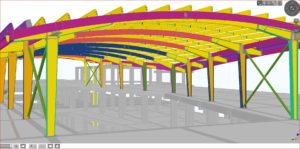 Tekla ha sido implementado para el desarrollo de las cubiertas metálicas del proyecto, al igual que los elementos que conforman la fachada