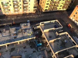The East project is a complex of four residential buildings with an underground garage. The building area is around 3300 square meters. Prefabricated reinforced concrete elements have been designed above monolithic foundations. The structure consists of single-layer internal walls, two and three-layer external walls, columns with variable cross-sections, simple and prestressed slabs, prestressed hollow core slabs and prestressed beams. The project was created in cooperation between CES Poland and Swedish Strangbetong, which are part of the Consolis group.