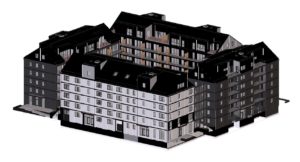 Geometry of the object chosen by the investor forced the need to use many complicated shapes of elements, and consequently the usage of non-standard solutions to connect them, for example the support of a steel structure that holds the glazing elements, connection of balcony panels with the rest of the structure and support of prestressed hollow core slabs.