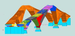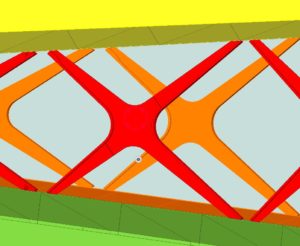 De moeilijkheidsgraad van deze brug zit hem vooral in de geometrie (niets is recht of loodrecht) en de vele getorste platen die soms uitkomen in halve buizen. Ook ziel en de flenzen van de kruisvormige verbanden zijn niet haaks op elkaar maar de flenzen van beide uiteen lopende caisons lopen in elkaars verlengde en de ziel volgen dan terug de richting van de caisson waarop ze zijn gelast.