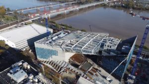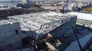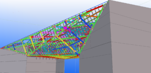 The work is composed of 2 reinforced concrete cores joined together by means of metal trusses on which mixed concrete slabs were applied to the execution of the respective floors. In the area of the roof and facades were also applied metal beams on which the prefabricated coating structure was applied. Complexity of the geometry of the work that forced the execution of bold connections in the metallic structure. The complexity of the connections between the metal structure and the reinforced concrete structure was also a challenge due to the geometry and angles of the metal structure. The good coordination and openness existing between architect, designer and workmanship that led to the discussion and approval of solutions of high complexity in the execution of the whole metallic structure.