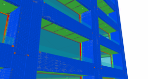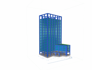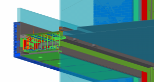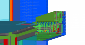 With 23 storeys block B houses commercial units on ground floor and apartments above, ending with a 2 storey high penthouse, surrounded by a 2 storey collonade structure, the so-called stonehenge. The precast structure, containing inner walls, stairs & landings, prestressed floorslabs and steel beams, is built up from a insitu transferslab. The facade exits of truly unique 1,8 m1 deep loadbearing sandwich brickwork elements, creating a complete inset balcony within each element. The in-situ structure at ground floor level is cladded with single skin elemenets after being waterproofed and insulated. The stonehenge at penthouse level exits of sandwich brickwork columns and brickwork beams, opening up the top of the building and having the penthouses set back within it.