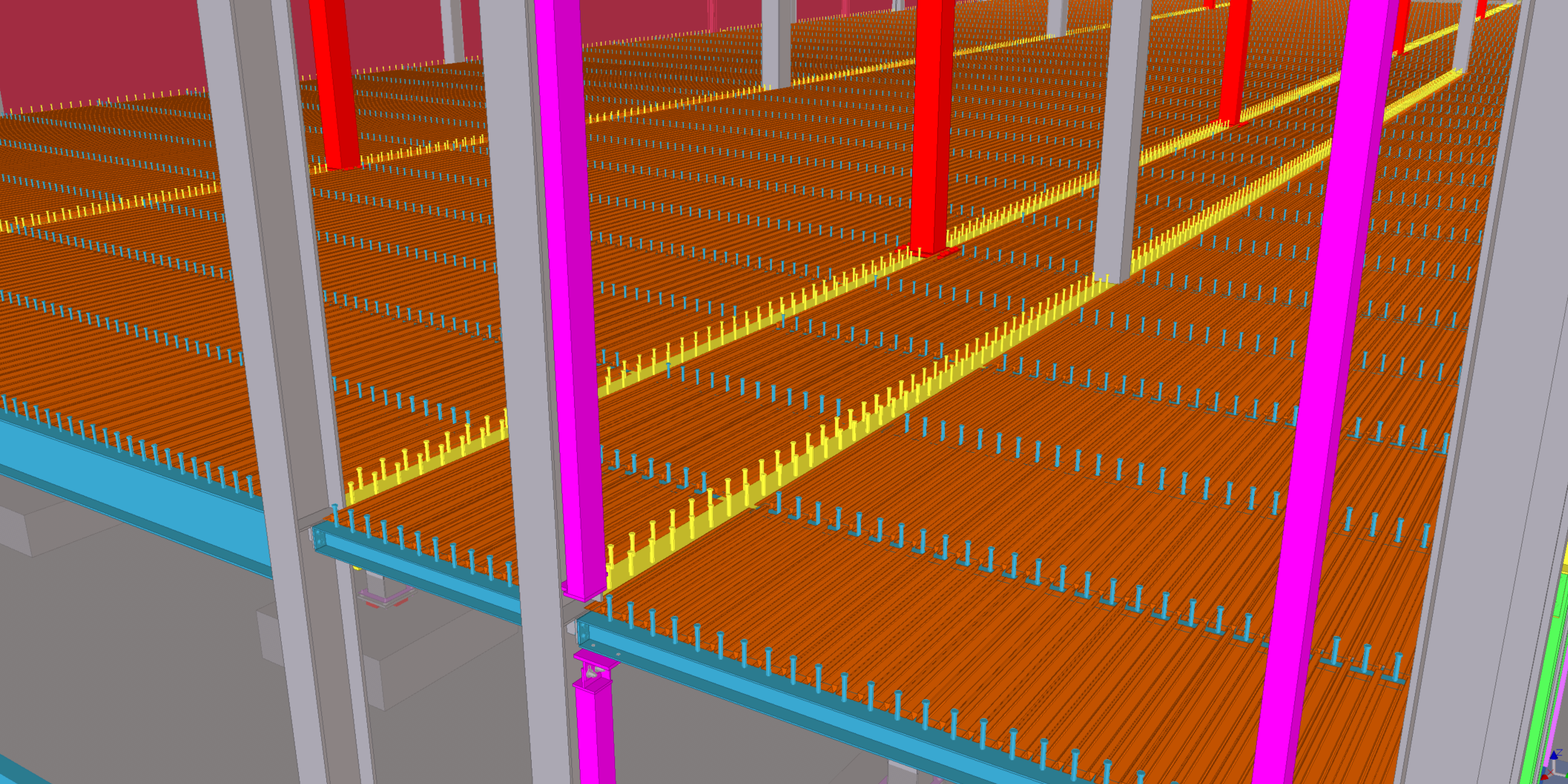 Custom components and parametric design tools within Tekla were also used extensively. Complex steel connections and variations in composite deck systems were automated through custom templates, saving hundreds of man-hours and improving consistency across drawings.