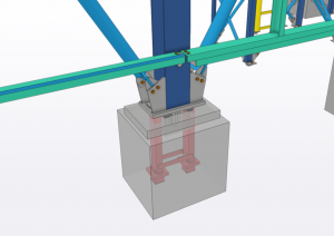 Konstrukce schodišťové věže je kloubově připojena do konstrukce Boiler house v jedné hlavní ose objektu.