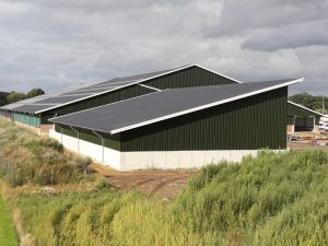 • Naast de ligboxenstal monteerde Wopereis ook een opslaghal voor