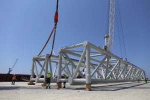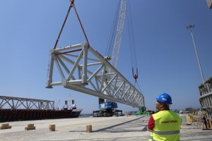 Martifer was contracted by Hutchison Ports ECT to build two tubular structures, each measuring 50 metres long, 5 metres high and 5 metres wide, with a weight of approximately 100 tons.