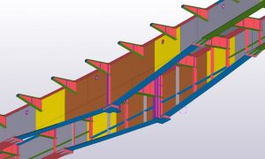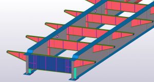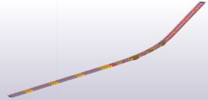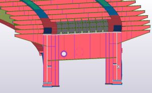 Workshop design of steel construction. A flyover with a total length of 620m was modeled, the weight of the steel structure is 2,200 Mg. It is an object in the form of a grid (two baling beams joined by crossbars, supplemented by brackets.