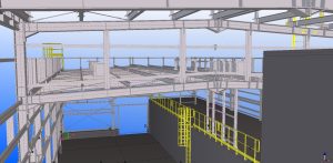Budynek zaprojektowano w konstrukcji stalowo-żelbetowej. Wyodrębniono część niższą z kalenicą w poz. +7,93m oraz część wyższą z kalenicą w poz. +10,47m.