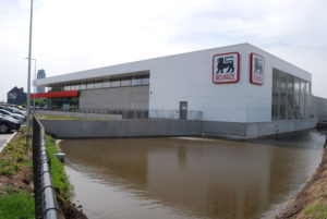 This re-build of a supermarket for Delhaize Belgium in Reet was designed by Louis Van Oost for AAVO Architects and was technically refined and constructed by Bedrijfsbouw Verelst.