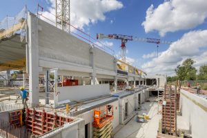 Due to the lack of free space around the building and the parking space that had to be left available for the temporary supermarket, we were forced to work with temporary retaining walls to be able to construct the basement. This basement was set up in Tekla according to our own construction methods and was then shared with the engineering office in IFC format to make their reinforcement calculations with.