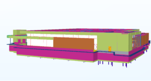 Door de geringe vrije ruimte rond het gebouw en de parkeerruimte die moest bewaard blijven voor de tijdelijke winkel, waren we genoodzaakt om te werken met een berlinerwand om de kelder te kunnen maken. Deze kelder werd in TEKLA uitgewerkt volgens onze uitvoeringsmethodiek. Er werd dan via IFC gecommuniceerd naar het studiebureau welke de wapening verder berekende.