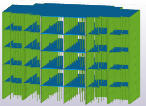 Modeling of the metallic formwork system for a concrete building with 5 floors and a height of 12 meters. With this modeling, we first sought to establish the amount of metallic formwork elements necessary to build the structure of the building composed mainly of walls and slabs in concrete, secondly it was intended to simulate the construction process, ie the Assembly of the formwork system and construction of concrete elements. The use of Tekla Structures was a determining factor in the achievement of these objectives, since it facilitated the 3D modeling of the formwork system by allowing the creation of a wide catalog of formwork components, among which are boards, corners, angles, trusses and metal parales, also allowed to perform the simulation of the construction process based on the programming established for it. In that order of ideas, thanks to all the tools that Tekla provides, a 4D model was created for the management of the building formwork. In addition, with the realization of this project and the feedback obtained, an educational strategy based on problem-based learning and the BIM methodology for the analysis of formwork in construction projects was proposed, in order to promote the use of tools such as Tekla in the training of civil engineering professionals.