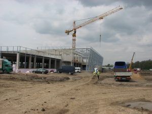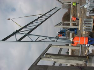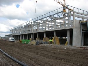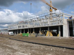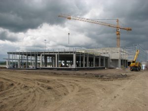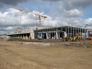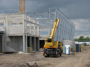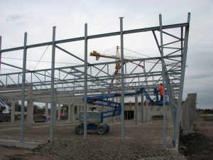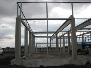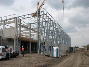 Ocelová konstrukce je navržena jako příhradové rámy, které se skládají ze sloupu uloženého na čepu a vazníku uloženého na prefabrikovaném sloupu. Mezi hlavními rámy, které jsou ve vzdálenosti 6m, jsou fasádní sloupy po 2metrech. Horní a spodní pás příhradového vazníku jsou provedeny z válcovaného profilu (HEA, HEB) diagonály jsou provedeny z trubek.