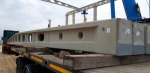 Appliance Park Łódź jest nową halą magazynową o konstrukcji prefabrykowanej. Firma Consolis Polska Sp. z o.o. była odpowiedzialna za zaprojektowanie oraz wyprodukowanie elementów konstrukcji dachu: dźwigarów, belek sprężonych oraz żelbetowych belek krawędziowych. Udało nam się uzyskać wyjątko lekką konstrukcję o ciężarze poniżej 75kg/m2 przy rozstawie słupów 12×22,5m dzięki zastosowaniu ażurowych dźwigarów sprężonych. Korzystanie z programu Tekla Structures znacznie ułatwiło nam komunikację z pozostałymi użytkownikami projektu, koordynację między branżami oraz produkcję prefabrykowanych elementów.