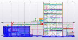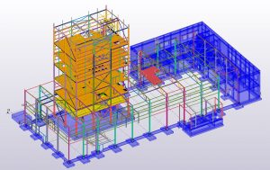 The warehouse building designed as a single-nave, one-story hall, with hot rolled columns rigidly connected to the foundation and the roof truss. The high rise building is designed as a spatial framework. The levels of platforms are dictated by the arrangement of a technological devices. They also provide a horizontal stiffening of the structure.