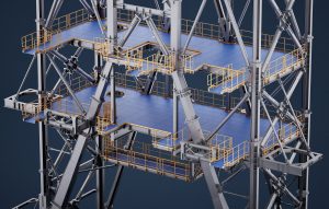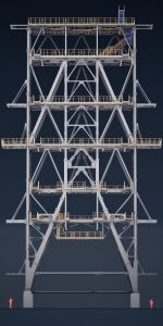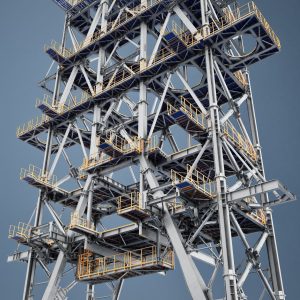 ● Etap 1 obejmuje około 90% konstrukcji wieży i realizowany jest w sposób bezkolizyjny, w bezpośrednim otoczeniu istniejących, funkcjonujących obiektów przemysłowych, bez wpływu na ich pracę.