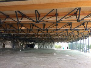 Design, manufacture and assembly of a unit in Penafiel, with a hybrid structure consisting of metal and wood, covering a area of ​​7500m² (125m long by 60m wide) with an interior free span (2x) 30m, with pillars and a central section made of triangular spatial truss.