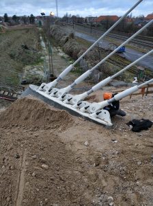 Design of a steel bridge with a pylon over the railway line.