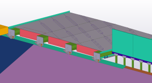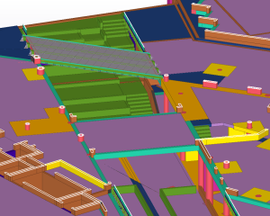 Budynek B, ze względu na swoje gabaryty, zostanie podzielony na sekcje dylatacyjne – w formie podwojenia konstrukcji w miejscu styku – w celu zminimalizowania efektów skurczowych. W części aparthotelowej budynku B, w osiach 13’-16/K-H, zaprojektowano wspornikową część budynku opartą na słupie w nieregularnym kształcie litery „V” o zmiennym przekroju.