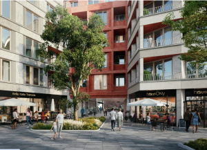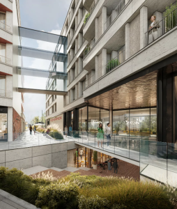external walls of the underground and the lowered ceiling above level -1 (in the area of the rain gardens, due to the possibility of the groundwater table rising above the ceiling level) – will form a so-called “watertight tank” structure. Due to the high groundwater level and the presence of two underground levels, micropiles have been constructed.