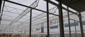 Projekt warsztatowy konstrukcji stalowej zadaszenia nad bramami wjazdowymi do hali przemysłowej w Biskupicach Podgórnych, w okolicy Wrocławia. Zadaszenie służy do zabezpieczenia baterii litowo-jonowych przed czynnikami atmosferycznymi, w czasie załadunku. Zadaszenie usytuowane jest na jednym z boków hali magazynowej, która wchodzi w skład kompleksu hal firmy LG CHEM. Konstrukcja ma wymiary 17,7×66,6m w rzucie, co daje powierzchnię ponad 1150m2. Konstrukcja składa się z podciągów, na których oparte są płatwie kratowe. Całość zadaszenia oparta jest na słupach i mocowana do boków hali. W modelu została również uwzględniona podkonstrukcja pod kasetony elewacyjne.