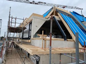 All in all, it was quite a job to make everything fit with concrete work / steel / glazing between the two roofs. There have been several consultations about the Trimble model, both physically and via Teams with third parties.