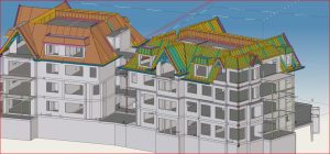 In het project ‘Residence Opduin’ is Teken- Ontwerp en Adviesburo Knetsch allereerst begonnen met staal, waarna ook is gevraagd om het dak uit te werken, waarbij ook ondersteuning voor staal nodig was. Het uitwerken hiervan kon dus mooi bij één tekenbureau en in één model blijven. De architect had een .IFC-model die helaas niet meer bijgewerkt was, gelukkig was die van de constructeur wel bijna geheel bijgewerkt.