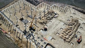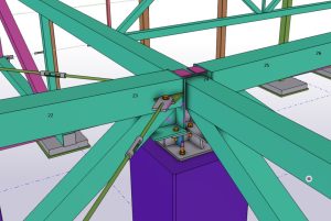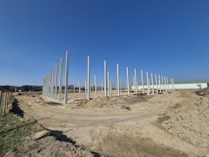 Konstrukcja hali ma charakter hybrydowy — opiera się na prefabrykowanych słupach żelbetowych, a dach wykonano ze stalowych dźwigarów kratowych z układem stężającym.