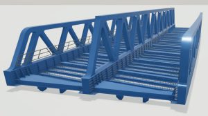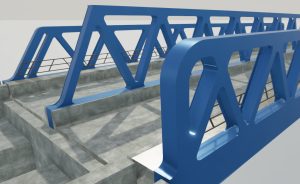 – 3 longitudinal truss girder beams and steel cross beams transversely arranged that work with the overcasting concrete slab through shear connectors