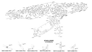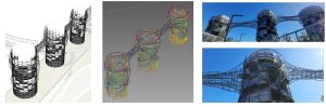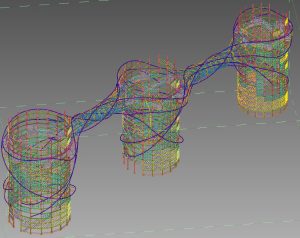Kétségtelenül a szerkezet leglátványosabb eleme, a mind a három kéményen végig futó, azokat körbe ölelő, örvényló kötélszerű acél csőszerkezet. Ez a szerkezeti rész nem tartalmaz mást, csak térben ívesen futó-csavarodó csőelemeket. Az építész geometria lekövetése miatt ezek az íves csövek több, kisebb szakaszból állnak (3-7 db). Minden egyes szakasz más és más ívsugárral készült. Ezeknek a szakaszoknak a térbeli illesztése, a megfelelő szögelfordulás megtalálása jelentette a legnagyobb kihívást a modellezés és a tervkészítés folyamán.