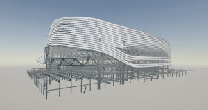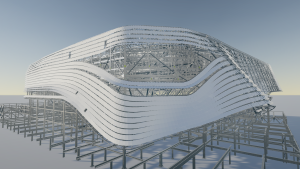 The project is called ROIG ARENA, a multifunctional building located in Valencia, Spain, on the plot bounded by the streets Ángel Villena, Bomber Ramón Duart and Antonio Ferrandis. The promoter is LICAMPA 1617, S.L. The main parts of the Arena, as detailed, are the Façade, the Roof, the Building and the Foundation. The scope of the model presented corresponds to the phases Façade (interior and envelope), Roof and Building.