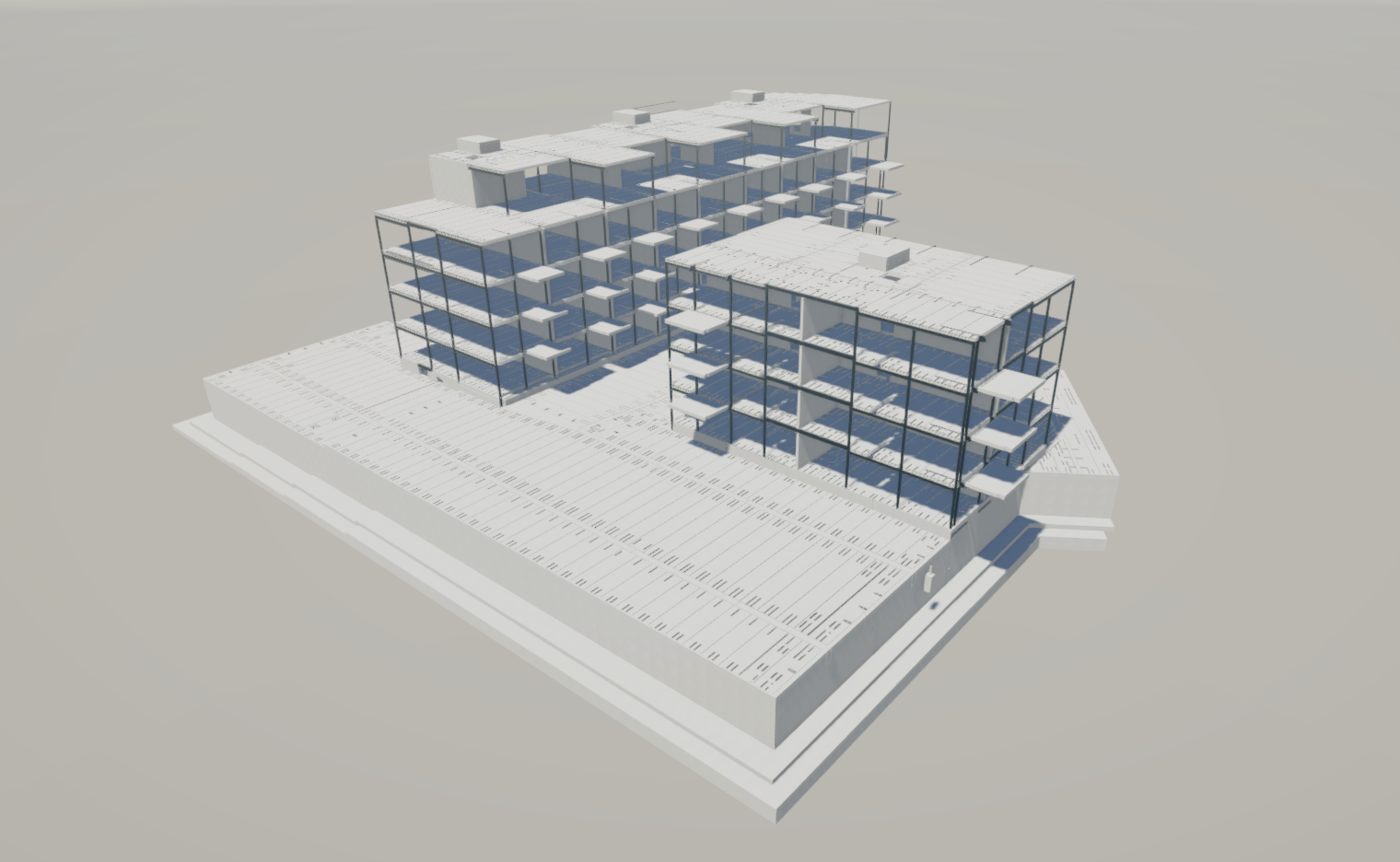 • A complete foundation design, including the excavation concept, formwork and reinforcement drawings for footings, strip foundations, and basement walls, as well as tower crane foundations (which, after disassembly of the crane, serve as supports for precast columns),
