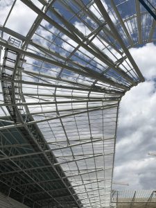 Táto konštrukcia je navrhnutá z valcovaných IPE profilov a jaklových profilov, na ktoré budú osadené plné polykarbonátové dosky hr. 10 mm.