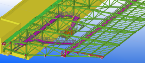 In assembly  phase, the vertical diagonals   for longitudal tension truss  L=8,15m  secure stability of the cantilevers, and   especially  secure the reinforcement of function from  horizontal   action of  the membranes.