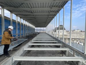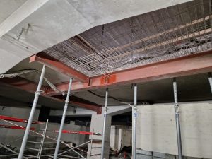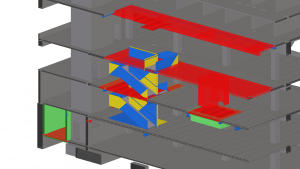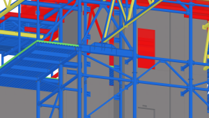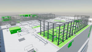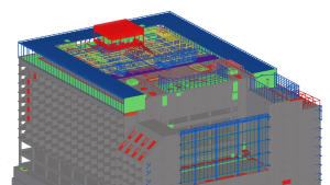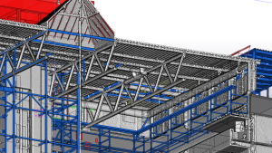A teljes modell Tekla Structuresben felépítettük és ebből nyerük ki az acélszerkezeti és vasbeton zsaluzási terveket valamint a bontási és átalakítási terveket.