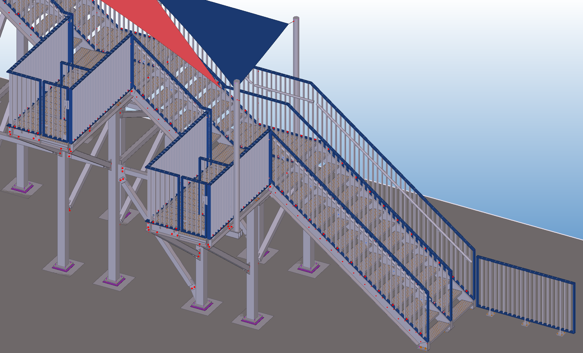 In addition to the steel structure, the project also included the design of railings, gates, and plastic platform plates. We also had the opportunity to provide detailed connection calculations using IDEA StatiCa.