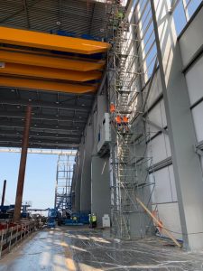 Voorzieningen voor o.a. bordessen, schuifdeuren en kraanbaan zijn meegenomen in de staalengineering.