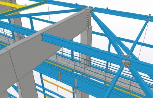 De complete staalconstructie is gemodelleerd in TEKLA, inclusief de montage-voorzieningen. Daarnaast vond de uitwisseling van bestanden tussen partijen plaats middels IFC.