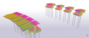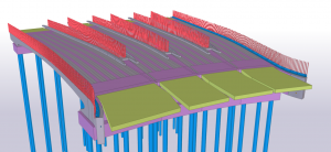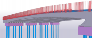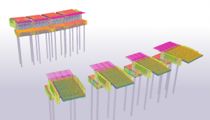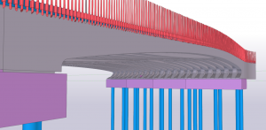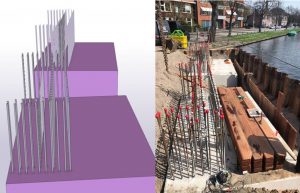 The construction of the bridge has completely been elaborated in a 3D BIM model. Within this model the overlapping fields of engineering are optimally managed and also the aesthetics are guaranteed. In a later stadium of the project the rebar was also incorporated into the model. Therefore all the cast in place concrete parts were completely modelled in 3D in Tekla, including the rebar. With the model as a base, the production drawings of the beams, the railing and the bump protections were created. By incorporating the rebar in the model we have solved some complex intersections in advance, thereby avoiding issues in the execution phase.