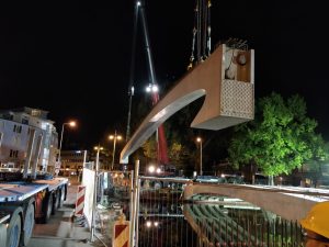 In the city centre of Leiden the current, temporary bridge called the ‘Valkbrug’ is being replaced by a new permanent bridge. The project is part of the renovation of the adjacent square called the ‘Lammermarkt’.