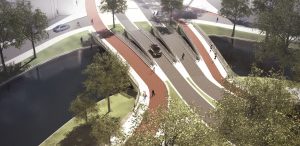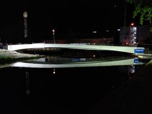 The big challenge within this project was the urban environment combined with the shape of the bridge. Between the two banks of the canal there was a relatively large height difference. The difference had to be bridged and within the stated requirements (maximum slope and clearance gauge underneath the bridge) combined with the high design requirements in accordance with the aesthetic quality plan. To realize this we looked at three different variants to minimize the necessary embankment at the south side. Eventually, in consultation with the client, the bridge moved a few meters to the south to blend the bridge in his environment as best as possible.